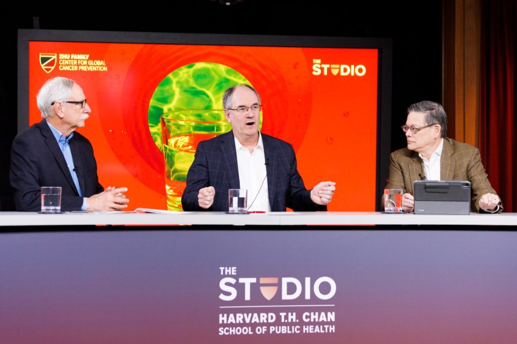 Walter Willett (from left), Eric Rimm, and Timothy Rebbeck. Anna Grummon of Stanford joined the conversation via Zoom.